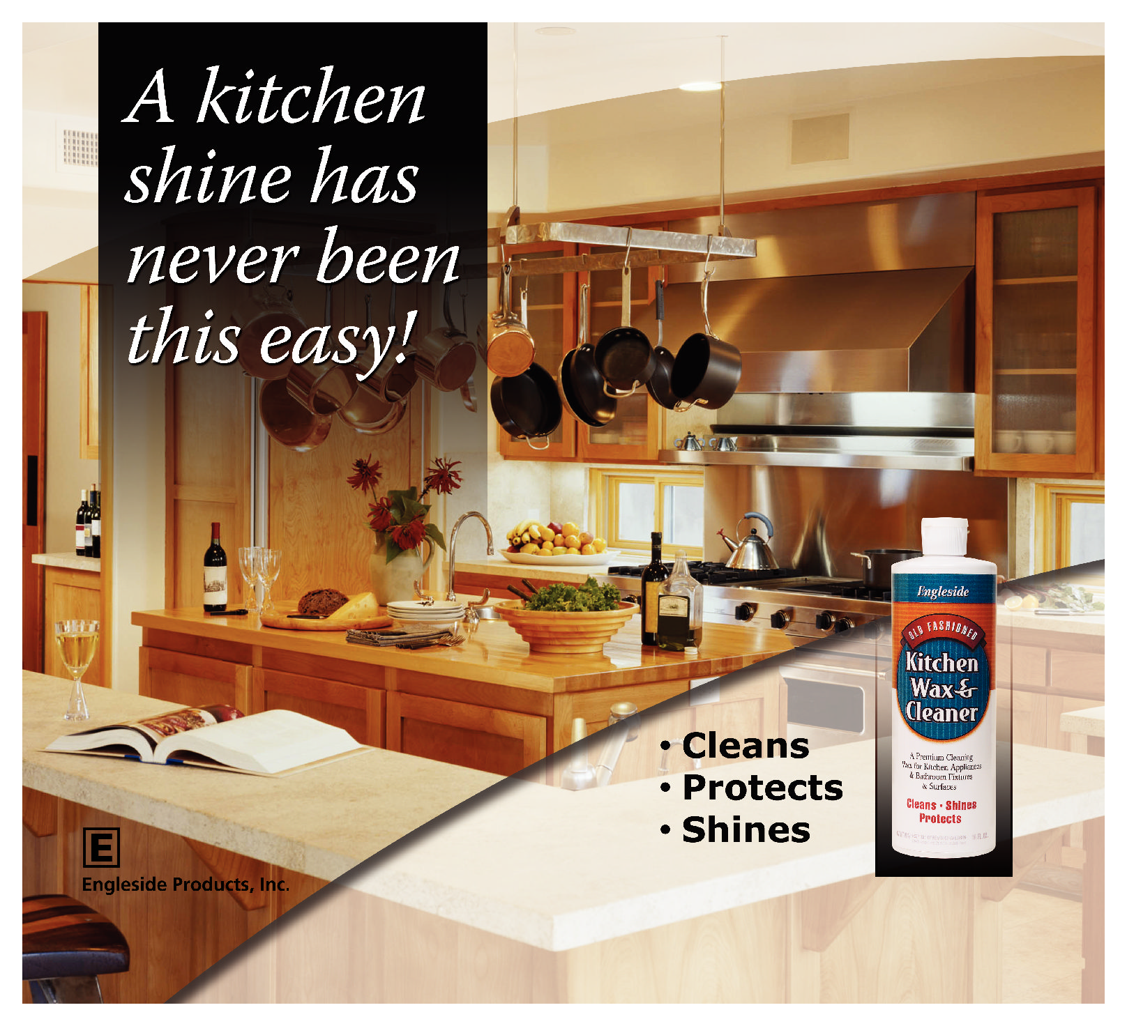 Apply a nice hard shine that will protect surfaces and make spills easier to wipe clean. Engleside’s Old Fashioned Kitchen Wax and Cleaner works well on Formica, Laminated Plastic, Ceramic Tile, Enamel, Granite, Marbel & Wood!